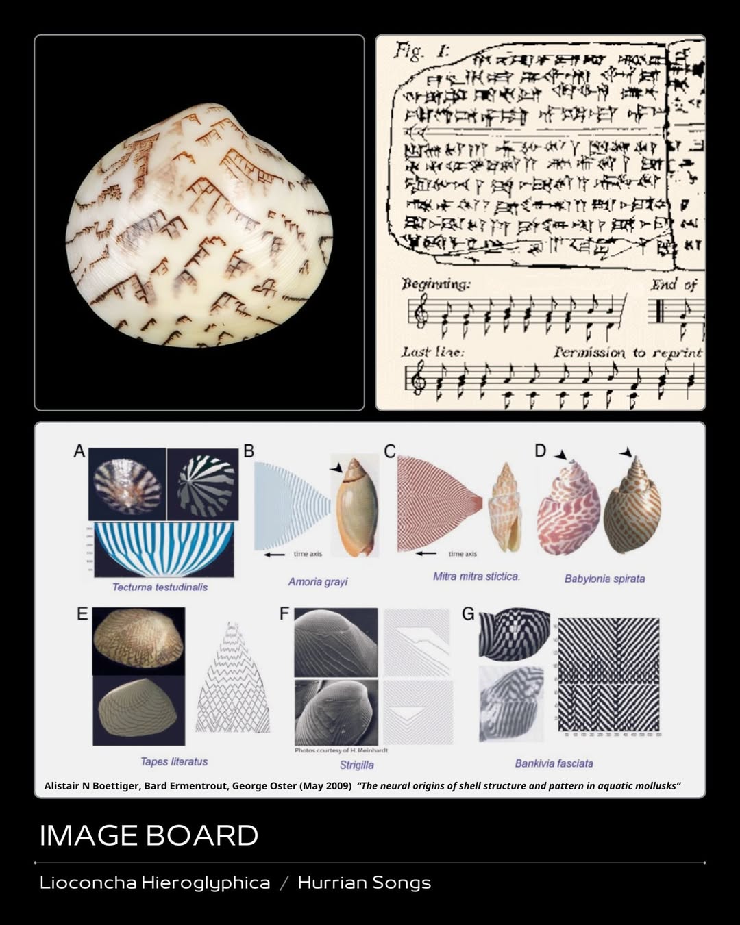 Sanatçı bu fikirden yola çıkarak şu soruyu soruyor: “Yüzyıllar süren bir dönüşüm, yalnızca birkaç saniyelik bir müzik parçasına sığdırılsa nasıl bir ses çıkarırdı?” Bu sorunun peşine düşen sanatçı, “hiyeroglif benzeri” desenleriyle tanınan özel bir deniz kabuğu türünü incelemiş ve onu bir müzik notası olarak yeniden tasavvur etmiş. Kabuğun doğal büyüme sürecini dijital ortamda simüle ederek bu evrimi ses sinyallerine çevirmiş.