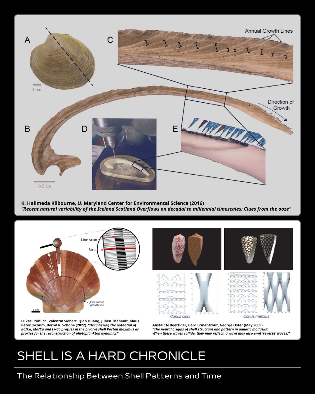 Tıpkı bir ağacın gövdesindeki yıllık halkalar gibi, deniz kabuklarının yüzeyinde de mevsimsel değişimleri kaydeden açık ve koyu bantlar bulunuyor. Bazı kabuklu türleri onlarca, hatta yüzlerce yıl yaşayabiliyor. Bilim insanları, bu izleri inceleyerek deniz ikliminin bin yılı aşkın tarihini yeniden oluşturmayı başardı. Her bir kabuk, adeta zamanın sessiz bir günlüğü gibi geçmişin izlerini taşımaya devam ediyor.