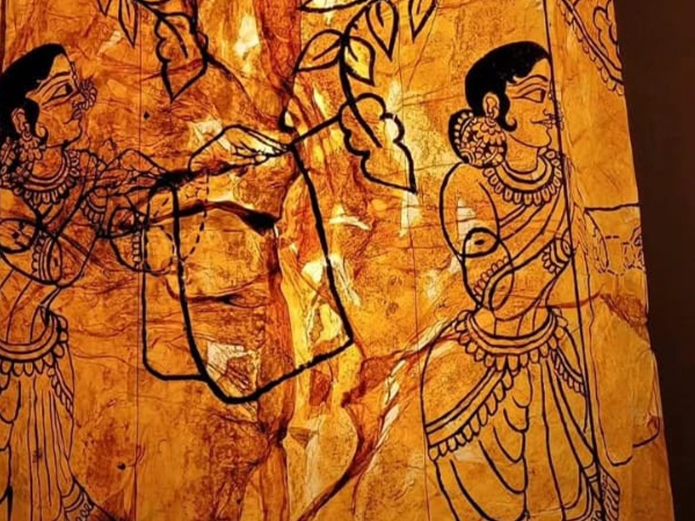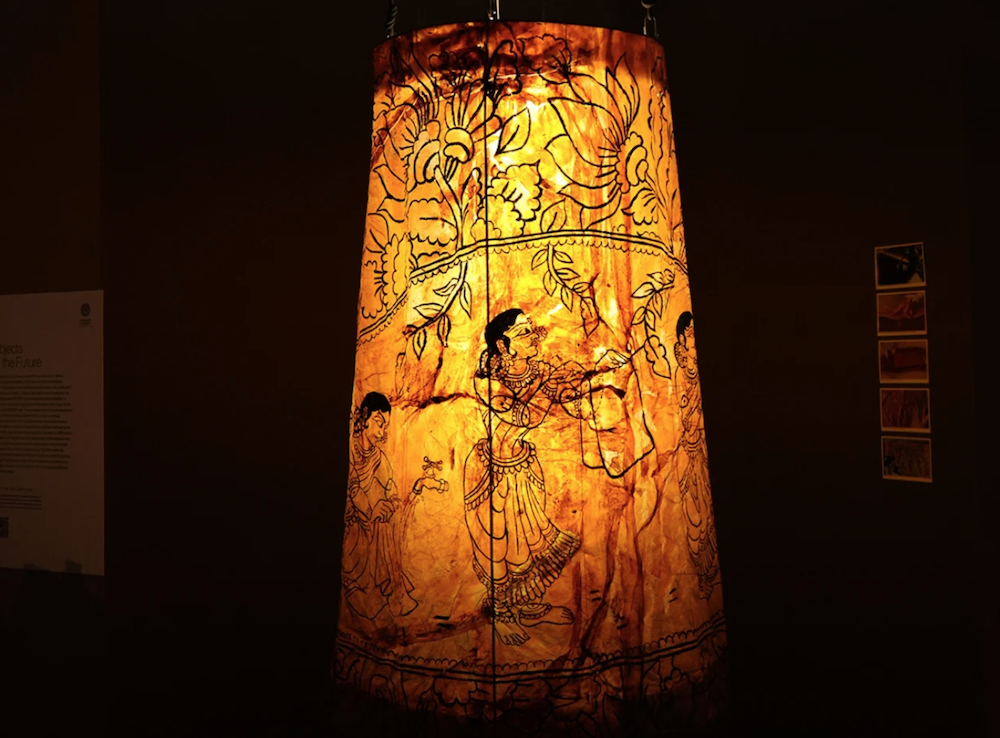 Luminous Lore, Hindistan’ın Andhra Pradesh eyaletinin gölge kukla tiyatrosu geleneği olan Tholu Bommalata’yı gösteren bir yerleştirme. Tholu Bommalata, bizdeki gölge oyununa çok benziyor, kuklalar da tıpkı Karagöz ve Hacivat stilinde. Hindistan’da da Türkiye’de de kuklaların yapımında, hayvan derisi kullanılıyor. Türkiye’de deve ya düve derisi kullanılırken, Hindistan’da keçi, geyik ve bufola derisi tercih ediliyor. Luminous Lore’da ise çay, şeker, su, sirke ve tabii ki SCOBY’nin fermente edilmesinden elde edilen deri görünümlü alternatif bir malzeme kullanılıyor.