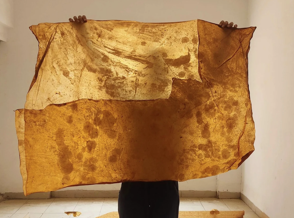 Kombuça ya da Kombu çayı (Kombucha), sağlığa faydaları nedeniyle bütün dünyada tüketilen Doğu Asya kökenli bir içecek. Birçoğumuzun denediği, bazılarımızın çok sevdiği bazılarımızınsa bir türlü alışamadığı bu çay; disk şeklindeki Kombucha çay mantarıyle yapılıyor. Kombu çayı şu sıralar bir biyomateryal olarak sürdürülebilir ve vegan tasarım alanında da çok popüler. Öyle ki bu çay; ayakkabı, oyun kontrolörü ve ambalaj malzemesi yapımında dahi kullanıldı. Bununla ilgili yayınladığımız haberleri, bu haberin final kısmında görebilirsiniz. Endüstride bu çayla elde edilen yan ürünlerinden biri SCOBY (a symbiotic culture of bacteria and yeast / bakteriden ve mayadan oluşan simbiyotik kültür) ve bu ürün de sürdürülebilir tasarım dünyasının en gözde malzemelerinden biri. Luminous Lore isimli yapıt gösteriyor ki bu eğilim sanat dünyası için de potansiyel taşıyor. Bu yapıt, yalnızca çağdaş eserleri değil geleneksel sanatlardaki tekniği ve malzemeleri de yeniden gözden geçirebileceğimize işaret ediyor.