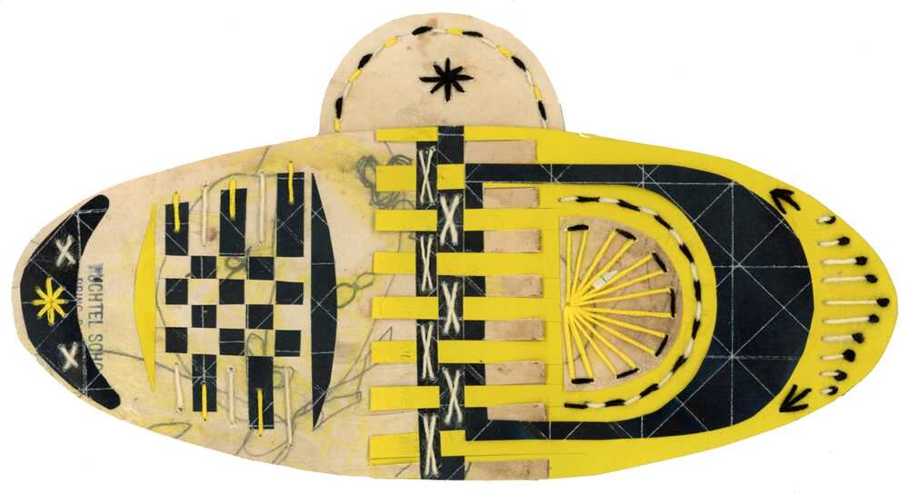 Chattanooga (Tennessee, ABD) merkezli sanatçı Hollie Chastain; kağıt, iplik ve guaj boya kullanarak geçici ve buluntu malzemeleri canlı kolajlarda bir araya getiriyor. Kestiği kağıt şeritleri dokuyor ve dikiş yöntemini kullanarak eğlenceli, soyut desenler halinde sabitliyor. Tüm bu desenlerin oluşturduğu şey ise sevimli birer UFO.