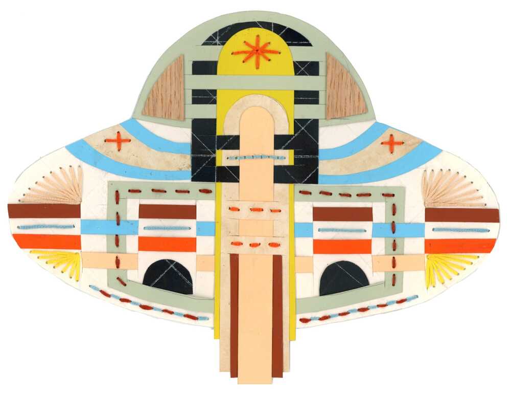 Hollie Chastain’in UFO eserisi, rastlantısal olarak ortaya çıkmış. Kağıt artıklarıyla soyut yüzey tasarımlarıyla oynarken önünde belli belirsiz bir UFO şekli belirmiş ve Chastain bu yoldan devam ermeye karar vermiş.