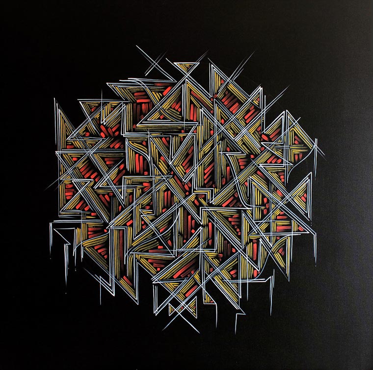 Abstrakt kompozisyonları, kaligrafinin karakteristik çizgileriyle birleşerek iç içe geçmiş detaylı desenler yaratıyor. ASU’nun ilk sergisi L’appartement Marseille‘de 21 Mayıs tarihine kadar yer alacak. Sergide yer alan diğer isimler ise Goddog, Pablito Zago ve Salamech.