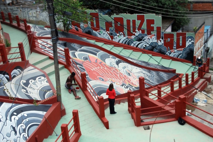 Oldukça ses getiren bu ilk projenin de gazıyla, bizimkiler beton yığını başka bir sokağı gözüne kestiriyor. Bu defa Japon tarzı, terse akan bir nehir siluete eklenmeye başlanıyor. Bunu yaparken artık ikili Vila Cruzeiro’nun yerlisi oluyor ve orada bir aileyle yaşamaya başlıyorlar. Projenin; yeni, birleştirici ve komünal yapısını güçlendirmek için her hafta mangal partileri verip tüm mahalleyle ahbap oluyorlar.