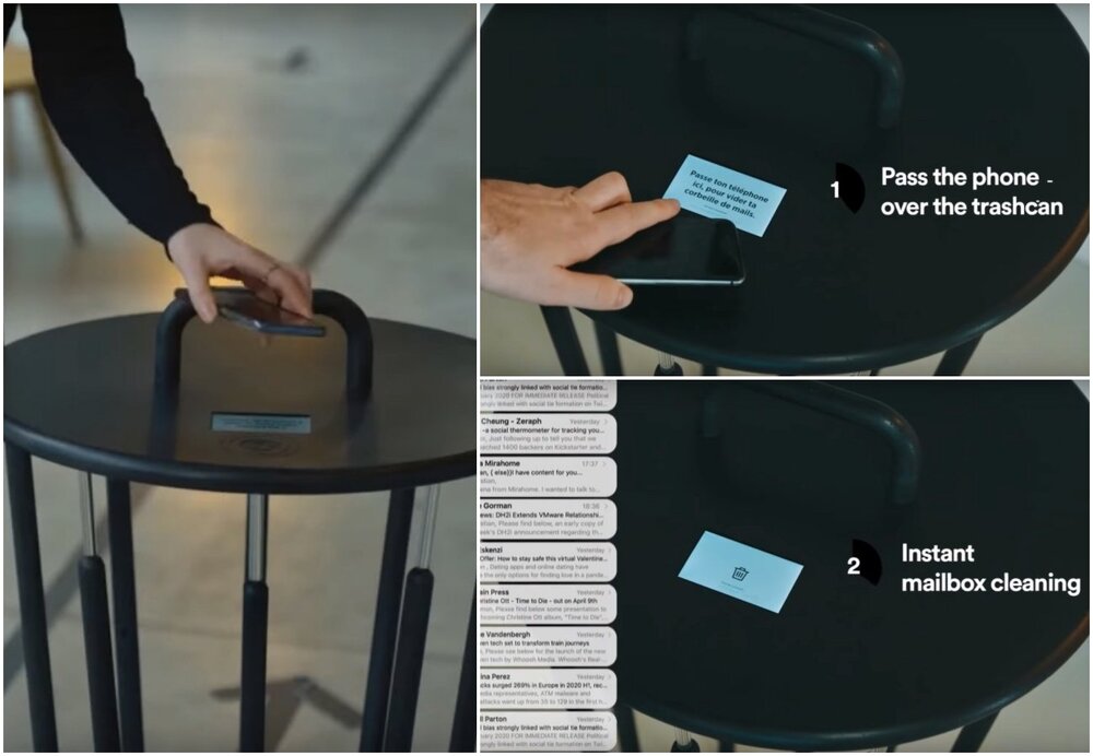 Bugün her internet kullanıcısının yüzlerce silinmiş e-postası çöp kutusunda duruyor. Fiziksel ve dijital dünyalar arasında köprü kurma misyonunu benimsemiş tasarım stüdyosu, çöp kutusunda biriken tüm e-postları hızlıca silebilen fiziksel bir çöp kutusu tasarlayarak e-posta hesapların çöp kutularında biriken ve dijital kirliliğe neden olan konuya parmak basıyor.