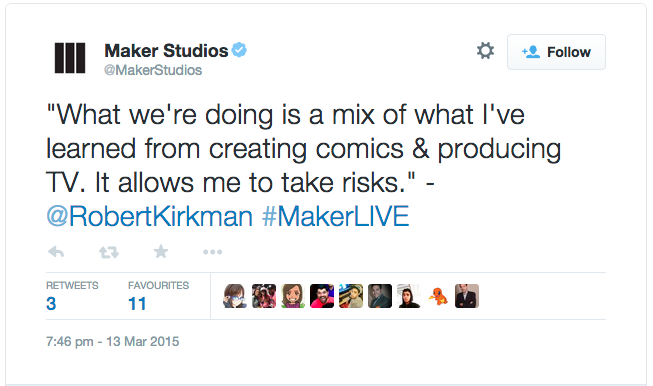 The Walking Dead’in yaratıcısı Robert Kirkman, yapımcısı David Alpert ve Maker Studios‘tan Erin McPherson, The Wall Street Journal’den Mike Shields moderatörlüğünde yarattıkları formatın ve kurdukları iletişimin iskeletinden bahsetti.