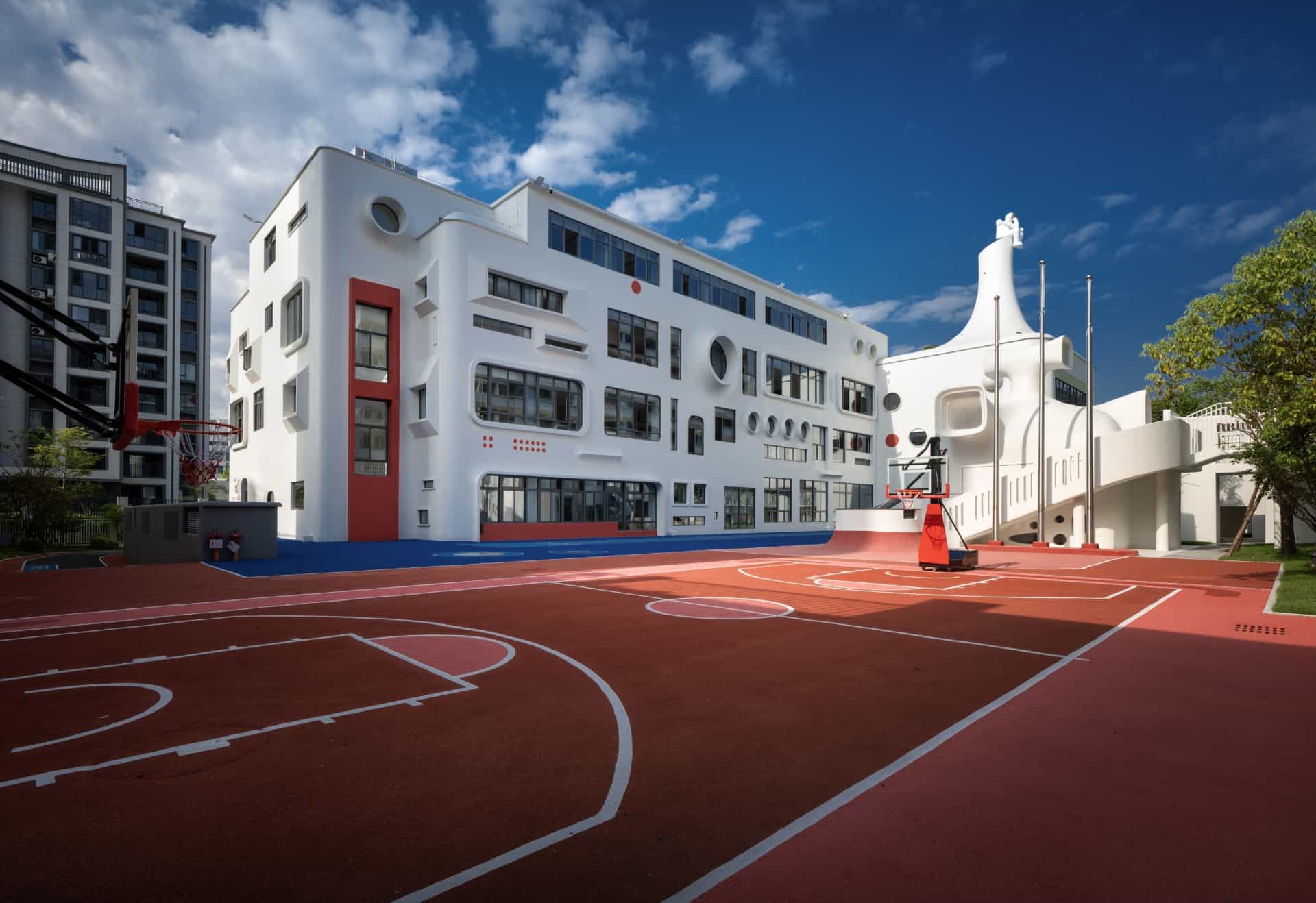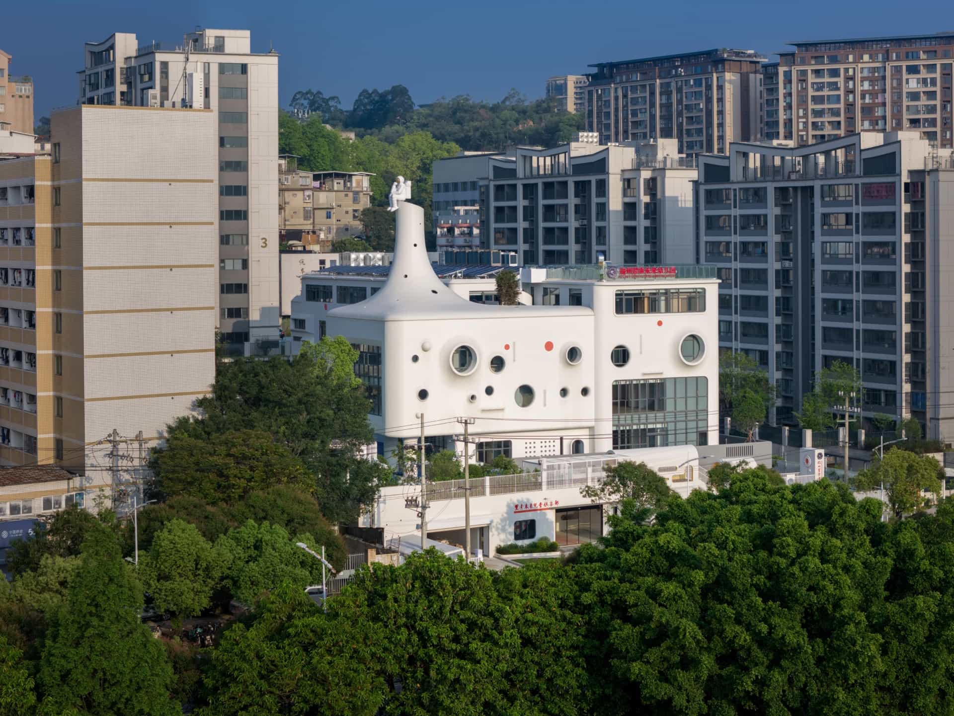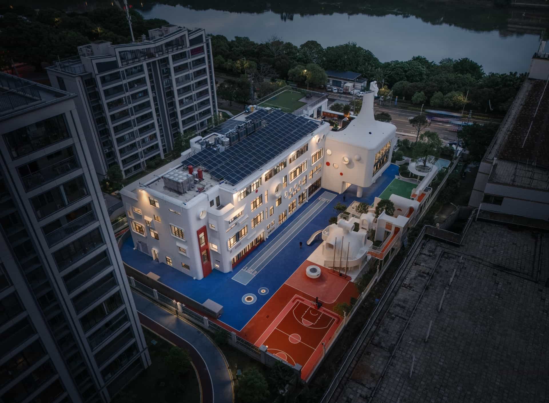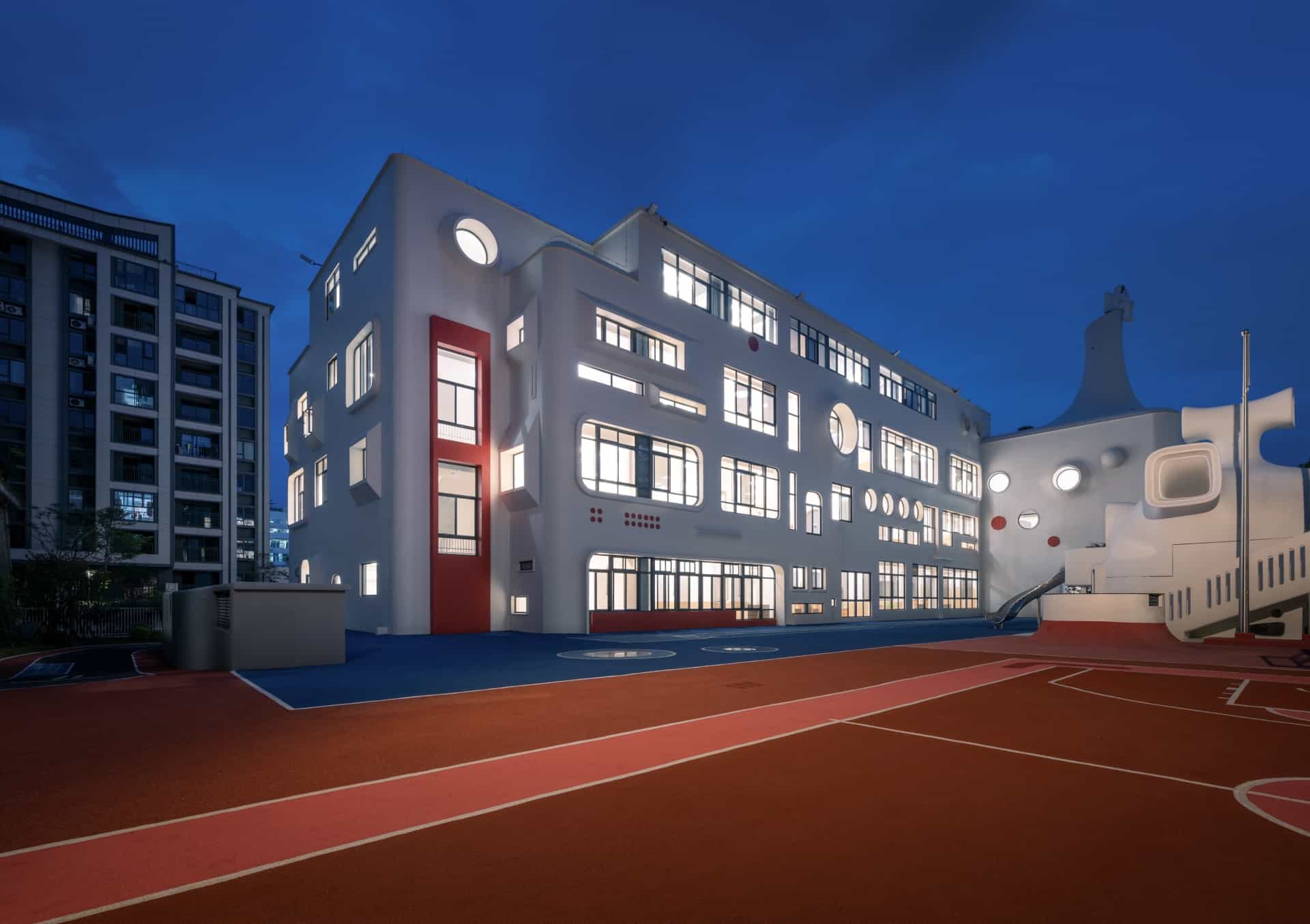 Çin’in Fujian vilayetinin başkenti olan Fuzhou şehrinde kapılarını açan Fuzhou ESUO Future Kindergarten (Fuzhou ESUO Gelecek Anaokulu) erken çocukluk eğitiminde çocukların hayallerini tetikleyecek ve gözlerini ışıl ışıl edecek bir mimari sunuyor. Guangzhou merkezli mimarlık ofisi Dika Architectural Design Center tarafından hayata geçirilen proje gayrinizami bir cephesi, oyuncaz mizacı ve tepesindeki astronot yerleştirmesiyle adeta çocuk olup okula en baştan başlama isteği uyandırıyor.