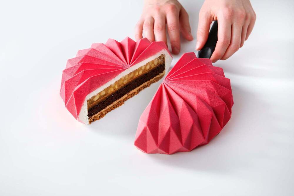 Ukraynalı pasta şefi Dinara Kasko, geçtiğimiz yıl Jose Margulis’in sanat yapıtlarından 3B baskı kalıplarla tasarladığı pastalarla ses getirmişti. Algorithmic Modeling Cakes adlı 3B baskı geometrik pasta projesiyle ise yeni icat edilen pembe çikolata Ruby’yi tanıtmıştı. Mimari ve tasarım eğitimi alan Kasko, bu alanlardaki altyapısını kullanarak yeni geometrik pastalar tasarlamaya devam ediyor.