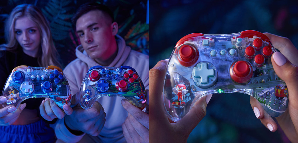 Kirpi Sonic’in yer aldığı kumandayla takım olarak bir de kablolu Switch kulaklığı hazırlanmış. Sonic’in arkadaşları Tails ve Knuckles da sırasıyla Seaside Hill ve Sky Sanctuary bölgelerini yeniden canlandıran kendi Switch kontrol cihazlarıyla fiziksel dünyaya taşınmış. Xbox kumandalarda ise mavi, gri ve beyaz renkler hakim.