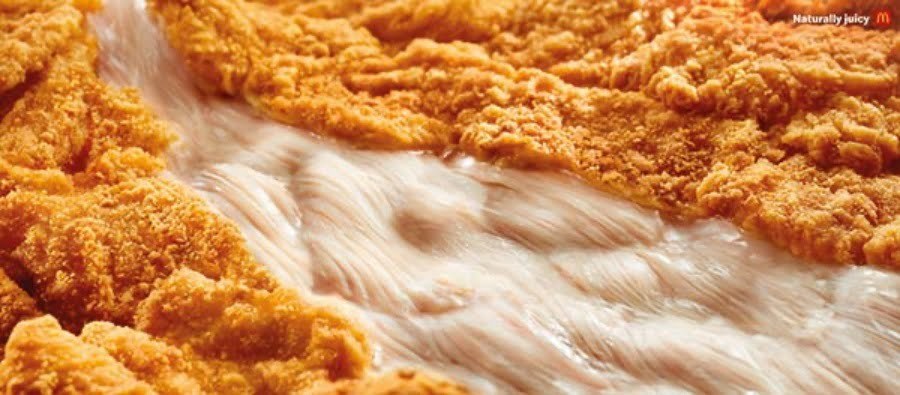 McDonald’s Hong Kong içi sulu çıtır tavuklarının akışkanlığını ön plana çıkarıyor