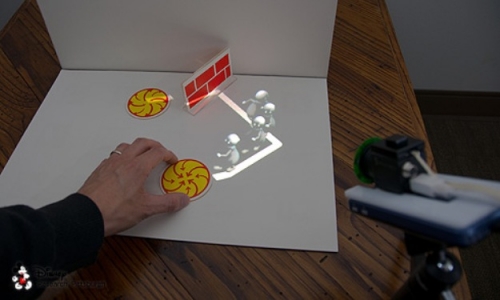 Pittsburgh’taki Disney Araştırma Merkezi ve Carnegie Mellon Üniversitesi bilim adamlarınca prototipi geliştirilen mini akıllı ışık projektörü HideOut, dijital içeriği günlük hayatta kullandığımız objelerin üzerine yansıtarak etkileşim için yeni bir form yaratıyor. Özetle bu mobil projektör sayesinde dijital görseller artırılmış gerçeklik ile fiziksel objelerle konuşabiliyor üzerine yansıtıldığında. Örneğin çocuk kitabına mini projektörle yansıtılmış görüntü, kitabın üstünde yeni bir karakter hikaye anlatımına katılabiliyor çocukların dünyasında.
