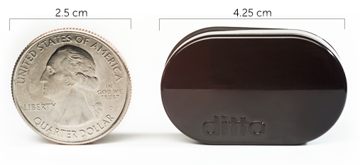 Bir bozuk para büyüklüğündeki Ditto, istenildiğinde bileklik kılıfı ile kullanılabiliyor. Veya genel kullanım olarak da üzerindeki mandallı sistem ile kıyafete takılabiliyor. Böylece daha da sadeleşen ürün sadece yapması gerekeni yapıyor. Şarj süresi, batarya ömrü gibi konulardan da bu sadelikle uzaklaşan tasarımcılar bir saat pili ile 4 – 6 aylık kullanım süresi tanıyor.