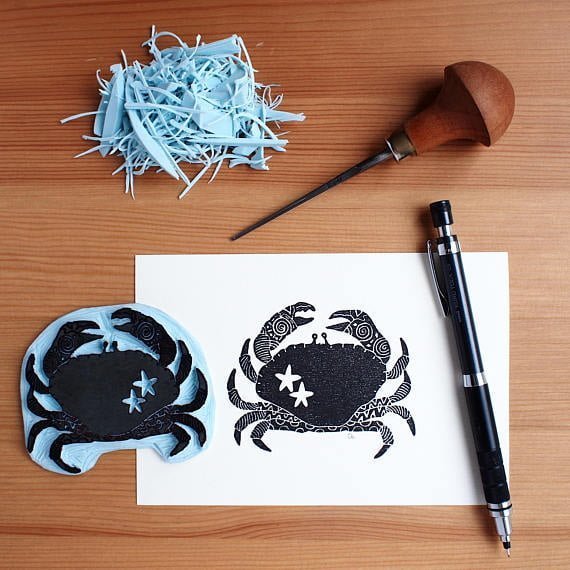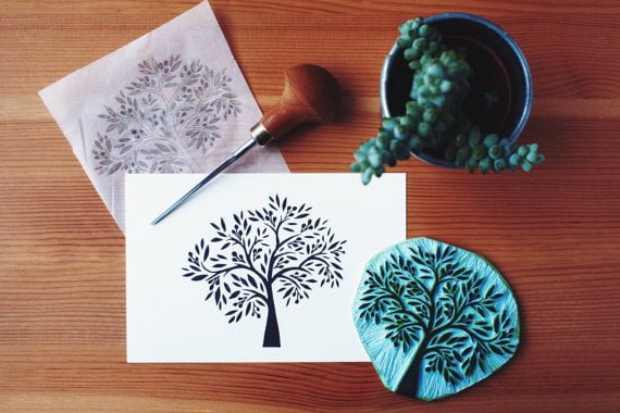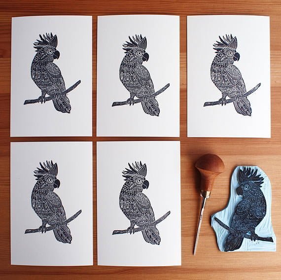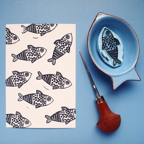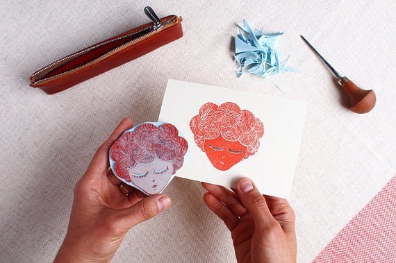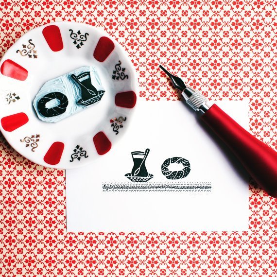 Geçtiğimiz yıl Münih’teki evlilik töreni için kendi davetiyelerini eşiyle birlikte hazırlayan Doğacan Onaran, oyma hikayesinin bu şekilde başladığını belirtiyor: “Yüzüklerimizin içinde yer alan eşimin çizdiği iki minik kuşu, duvak ve papyon ekleyerek mühür haline getirdim ve el yazısıyla davetiyelerimizi tamamladık. Herkes çok beğendi! O kadar özenle hazırladık ki, el yapımı olduğuna inanamadı kimse. Epey hoşuma gitti bu iş. Ben de devam etmek istedim. Dünyanın dört bir yanındaki sanatçıları takip etmeye başladım. Instagram’dan epey faydalandığımı söyleyebilirim bu aşamada. Kendi tarif kartlarımı hazırlamaya başladım önce. Sonra baskıların ebatları büyümeye başladı. Her oymada yeni bir teknik geliştiriyordum kendimce. Kitaplar okuyup sanatçıları takip ederek öğreniyordum. İlk online satışımı yaptığımda çok heyecanlanmıştım! Hep sabırla ve büyük bir tutkuyla çalışmaya devam etmek istedim.”