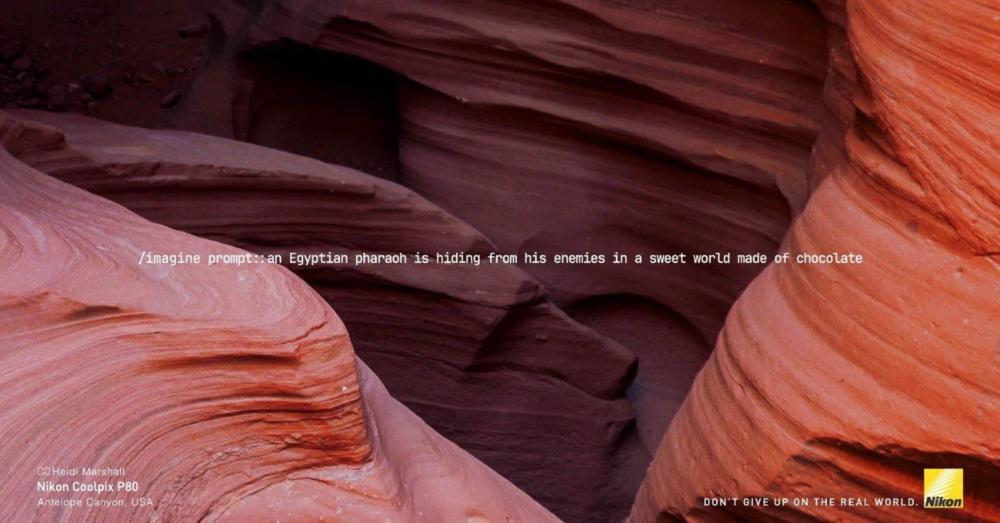 Kreatif ajans Circus Grey imzalı kampanyada, dünyanın çeşitli yerlerinde fotoğrafçılar tarafından Nikon kameralarla çekilen doğal yerlerin görüntülerinin yapay zekânın ortaya koyduğu görsellerden daha şaşırtıcı ve güzel olduğu mesajı veriliyor. Basılı ve açık hava kampanyası olarak kurgulanan çalışmanın reklam afişlerinde, yeryüzünün olağanüstü görüntüleri ile metinden görsel oluşturan yapay zekâ aracının bu görselleri oluşturmak için kullanabileceği istemlerin yer aldığı kısa bir parodi metni yer alıyor.