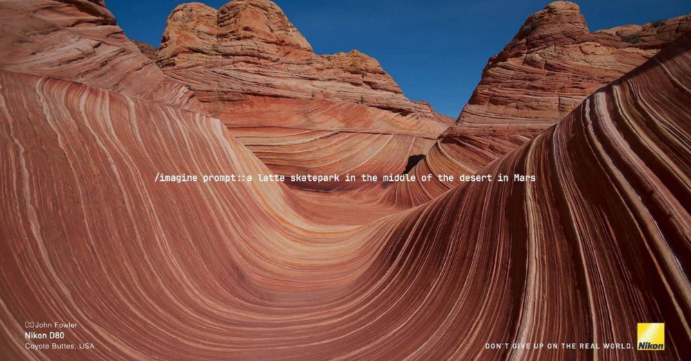 Kreatif ajans Circus Grey imzalı kampanyada, dünyanın çeşitli yerlerinde fotoğrafçılar tarafından Nikon kameralarla çekilen doğal yerlerin görüntülerinin yapay zekânın ortaya koyduğu görsellerden daha şaşırtıcı ve güzel olduğu mesajı veriliyor. Basılı ve açık hava kampanyası olarak kurgulanan çalışmanın reklam afişlerinde, yeryüzünün olağanüstü görüntüleri ile metinden görsel oluşturan yapay zekâ aracının bu görselleri oluşturmak için kullanabileceği istemlerin yer aldığı kısa bir parodi metni yer alıyor.