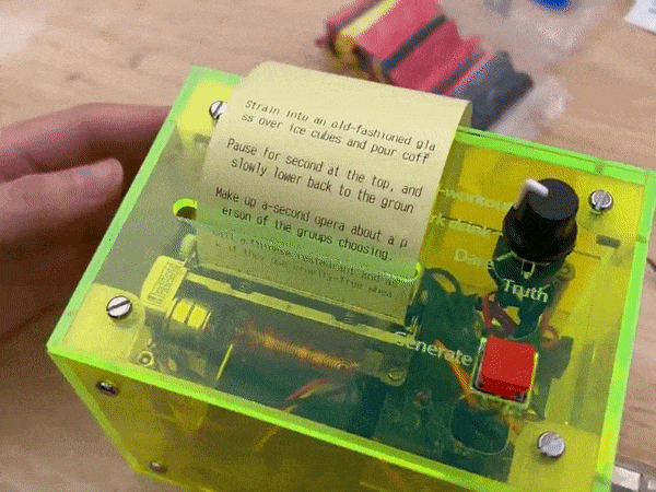 Her ne kadar teknolojik gelişmelerle insanların birbirleriyle iletişim kurmasının yolları çeşitlense de doğruluk mu cesaret mi hala arkadaş ortamında vakit geçirmek için en keyifli etkinliklerden biri. Yine de oyunu sık sık oynamaya başladığınızda bir noktadan sonra yaratıcı ve eğlenceli soruları bulmak zor olabiliyor. Çevrim içi platformlarda bu oyun için çeşitli sorular yazılmış olsa da sınırlı bir kaynak bulunuyor. Olan yerlerde de aynı sorular karşınıza çıkmaya başlıyor. Yibo Fu ve Yuqing Liang tarafından tasarlanan Trouble Maker isimli cihaz bu soru kıtlığına yaratıcı ve eğlenceli bir çözüm üretiyor.