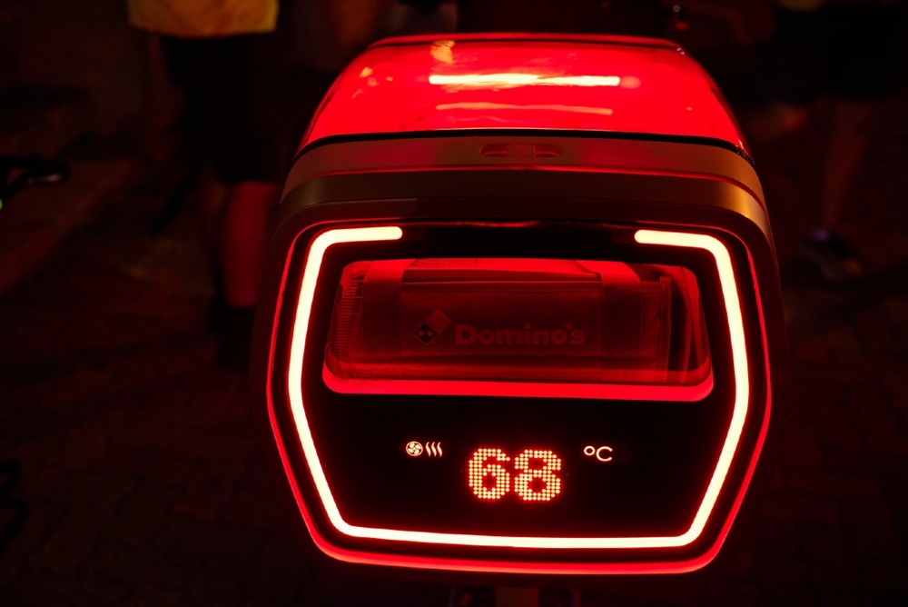 Teslimat süresince fırının sıcaklığı da ışıklandırmayla aracın arkasında beliriyor. Bu da e-bisikleti adeta bir reklam panosuna dönüştürüyor.