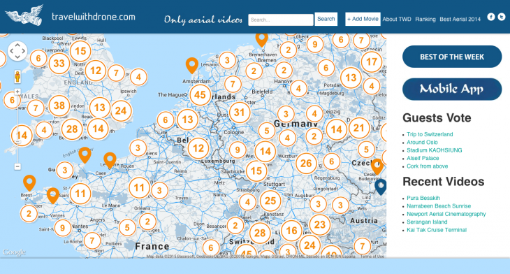 Bu konuda faaliyet gösteren iki internet sitesi bulunuyor. Jan Hiersemenzel, Mart 2014’te Travel by Drone projesini hayat geçirmiş. 23 Temmuz 2014’te ise başka bir ekip tarafından Travelwithdrone projesi hayata geçmiş. Veri tabanlarının genişliği ve benzerliği farklılık gösterse de iki kaynağı da birlikte kullanarak “insanoğlu kuş misali” deyimini oturduğumuz yerden anabiliriz.