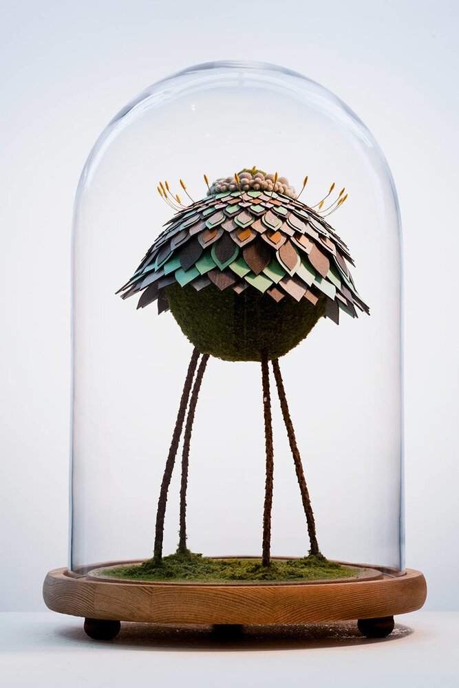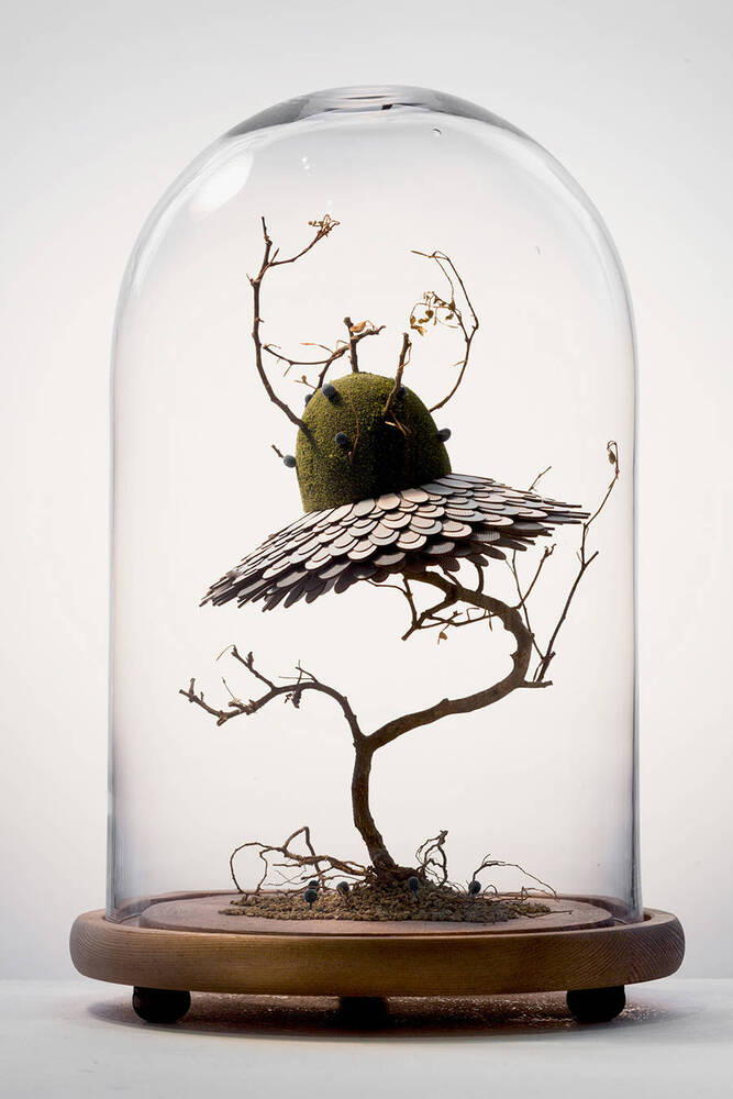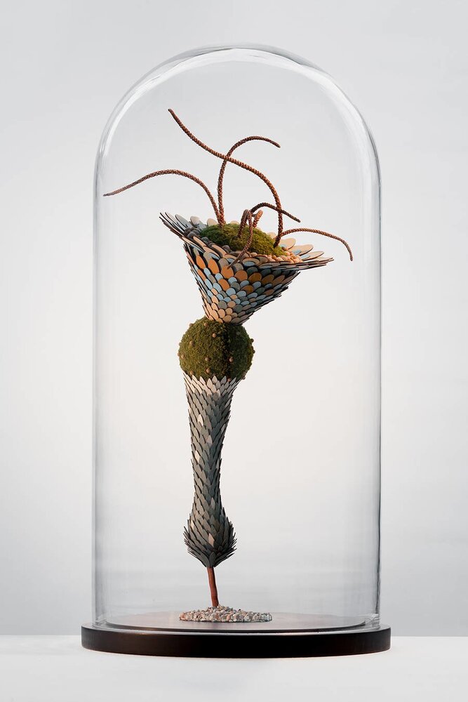 Singapur’da yaşayan Malezyalı sanatçı Noreen Loh Hui Miun, fantastik birer ikebanayı andıran eşsiz bitki formları yaratıyor. Peri masalından ya da Studio Ghibli filmlerinden çıkmış gibi görünen “The Marriage” isimli bu el yapımı seri, Hermès vitrinindeki fantastik ormanı anımsatıyor.