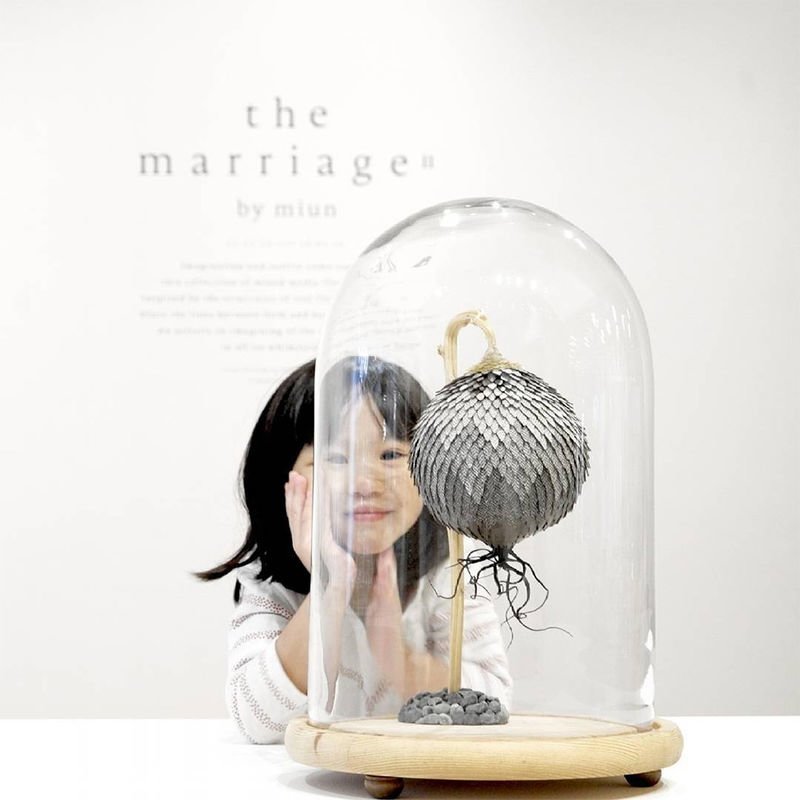 Gerçek bitkilerden ve çiçeklerden çeşitli soyut elementleri alıp çalışmalarında kullanan Miun, bu dünyaya dair bildiğimiz her şeyi kendi hayal gücüyle yeniden yaratıyor. Çalışmalarında ağırlıklı olarak kağıt ve karton kullanıyor. Ürettiği fantastik çiçekler kolayca hasar görebilecek türde olduğundan tıpkı origami sanatçısı Floriane Touitou gibi onları bitkinin boyutuna uygun cam fanuslarda saklıyor.