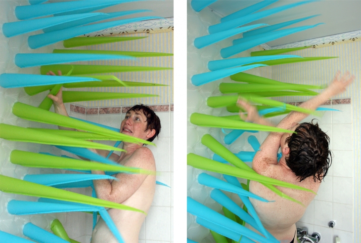 Londralı tasarımcı Elisabeth Buecher’in tasarladığı duş perdesi, duşta uzun süre kalanları, foşur foşur su akıtanları rahatsız etmeyi görev edinmiş.