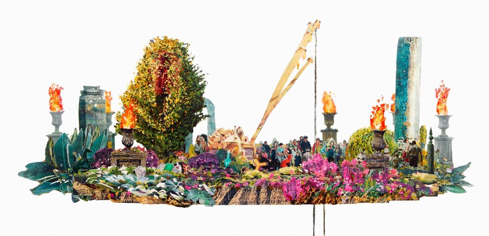 Dünyanın ve insanlığın ne yöne gittiğini, insan aktivitelerinin gezegen üzerinde yol açacağı yıkımı ele alan distopik tartışmalar pek çok sanatçıya ve tasarımcıya ilham veriyor. Filip Hodas popüler kültürün distopik ikonlarını, Mike Winkelmann dev markaların kıyamet sonrası hallerini, Y. Nakajima ise kıyamet sonrası oyuncaklar tasarlayarak sözünü söylemişti. Dün paylaştığımız Páraic Mc Gloughlin imzalı müzik videosu da “İnsanlık olarak nereye gidiyoruz” sorusunu hipnotize edici motiflerlerle görselleştiriyordu. Sanatçı Dustin Yellin ise kendine özgü bir teknikle ürettiği foto-kolajlarla bu temayı ele alıyor.