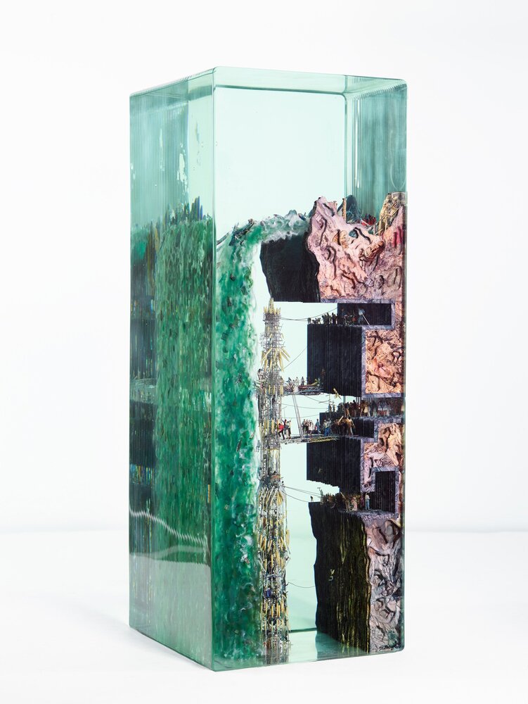 Dustin Yellin, çalışmalarını “donmuş sinema” olarak tanımlıyor
