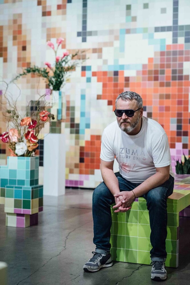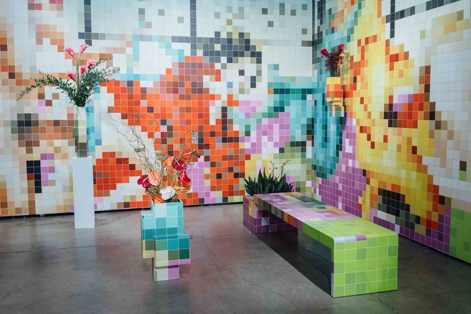 Alman sanatçı Tobias Rehberger’in renkli duvar karoları kullanarak ortaya çıkardığı pikselleşmiş porno sahneleri, Art Basel Miami Beach’in 3 duvarını boydan boya kaplıyor. Karolarla kaplı her yüzeyde, farklı bir seks pozisyonu işenmiş. Yerleştirme sadece duvarlardan oluşmuyor; odaya yerleştirilen bank ve çiçeklikler de karolarla kaplanmış ve bunlar sahnelere detay ve derinlik katıyor.