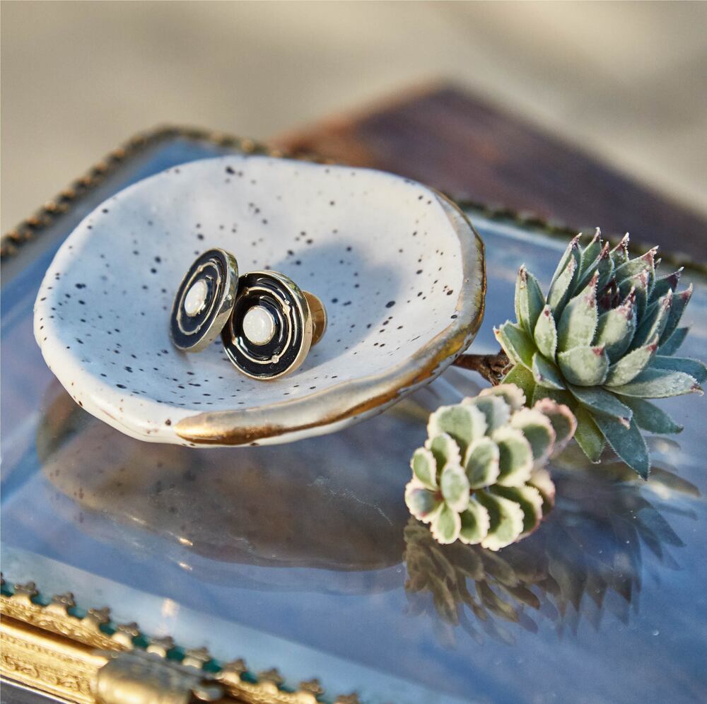Parçaların kendileri narin bir estetiğe sahip ve koleksiyonun adına uygun olarak, her aksesuar yuvarlak bir motif içeriyor. Mesela, küpeler yuvarlak opallerle tamamlanıyor, dairesel halka küçük kürelerle süsleniyor.