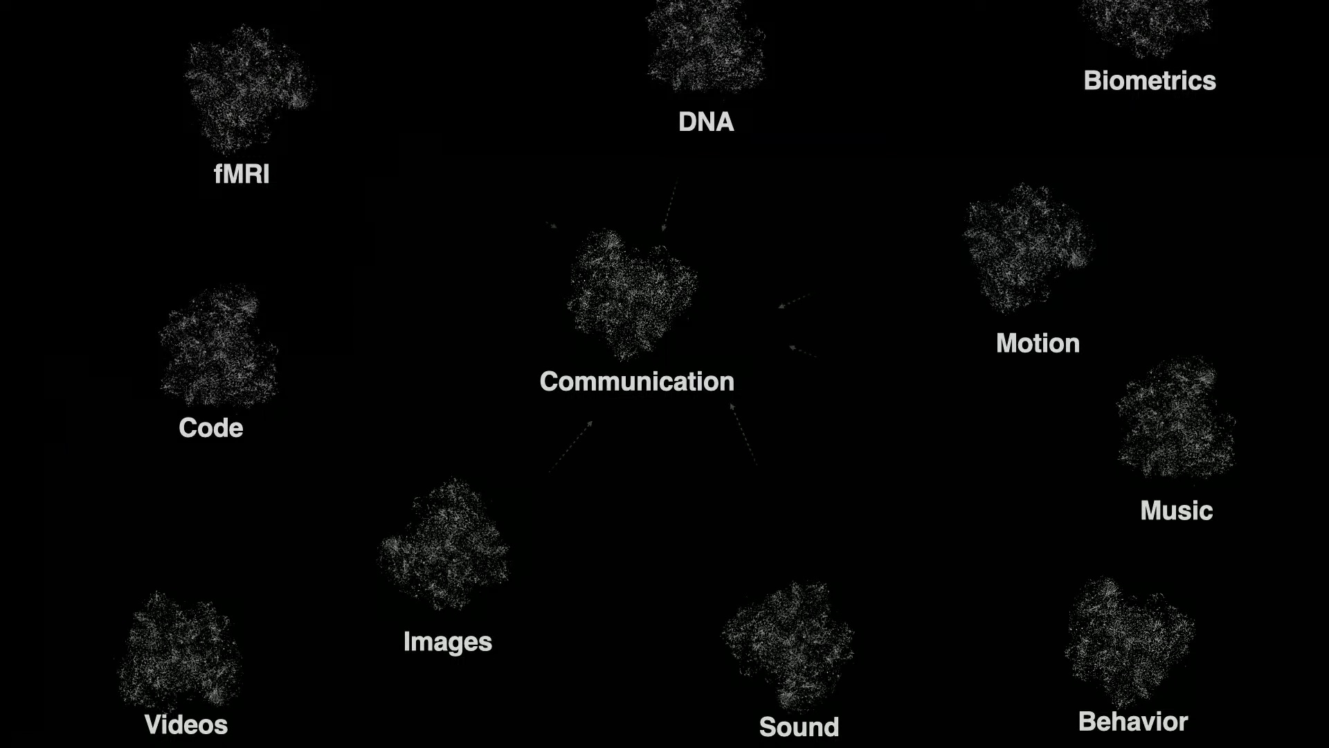 Yapay zeka dünyasının bu kadar hızlı ilerlemesinin bir nedeni de bir veri seti ve öbeklerin bulutu olarak gördüğümüzde iletişim, kod, ses, imajlar, videolar, müzik, davranışlar, dna, hareket, fMRI ve niceleri aynı şekilde oluşutup kıyaslanabilecek çok boyutlu şekillere, Yerleştirme Uzayına dönüşüyor.