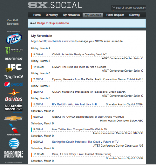Organizasyonun incelikle düşünülmüş SXSocial uygulaması ile kendi ilgili alanlarınızdan kimler katılıyor, Türkiye’den kimler katılıyor, sosyal ağlarınızda arkadaşınız olan kimler orada olacak gibi bilgileri alıp aynı zamanda kendi programınızı oluşturup kaydedebiliyorsunuz. Benim programım;