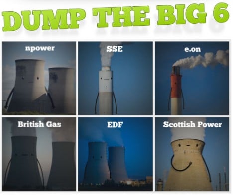 Birleşik Krallık’taki Big Six olarak tanılan 6 büyük enerji şirketinin 2012’de pahalı tarifeleri satmak için şüpheli satış taktikleri uyguladığı ortaya çıkmıştı. Fosil yakıta bağımlılığı azaltmak ve yenilenebilir enerjiye geçmek için de Ecotricity, reklam ajansı Man+Hatchet ile birlikte Dump The Big Six kampanyasını hayata geçirmişti. Minik birkaç çizgi ve animasyonla yenilenemeyen enerji kullanan nükleer santral ve fosil yakıt madenlerine birer karakter, şirin şirin 5 çayını içerken bir anda yıkılıyorlar. O kadar sevimli ki bir anda karmaşık hisler geliştirmeyi başarıyor