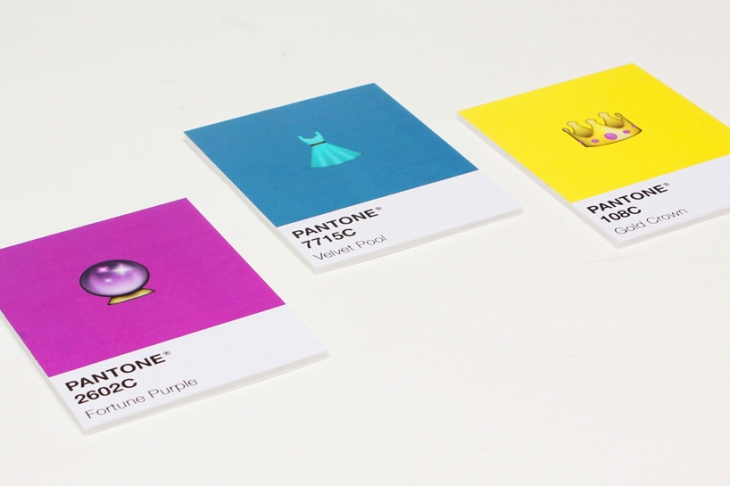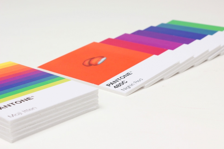“Moji Itten” isimli seri 12 karttan oluşuyor ve kartların üzerindeki emojilerin fonunda eşleştikleri Pantone renkleri, altında ise isim ve numara yer alıyor. Örneğin: