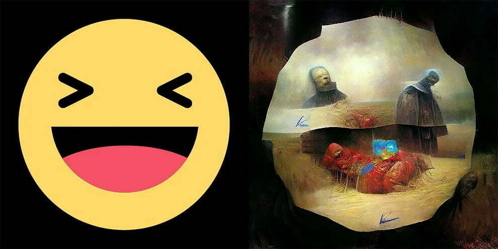 Kendimizi ifade etmek ve mesajlarımıza biraz olsun renk katmak için kullandığımız neşeli emojilerin sarı gövdesinde karanlık bir evren olabileceğini hayal ettiniz mi hiç? Metinden görüntüye sentezleme ve yapay zeka sanatı alanında üretim yapan bir reddit kullanıcısı, böyle gerçeküstü bir evren yaratmayı denemiş. Sonuçlar da oldukça tekinsiz olmuş gerçekten. Bu tuhaf emojilerin ilham kaynağı da Zdzisław Beksiński adlı ressam.