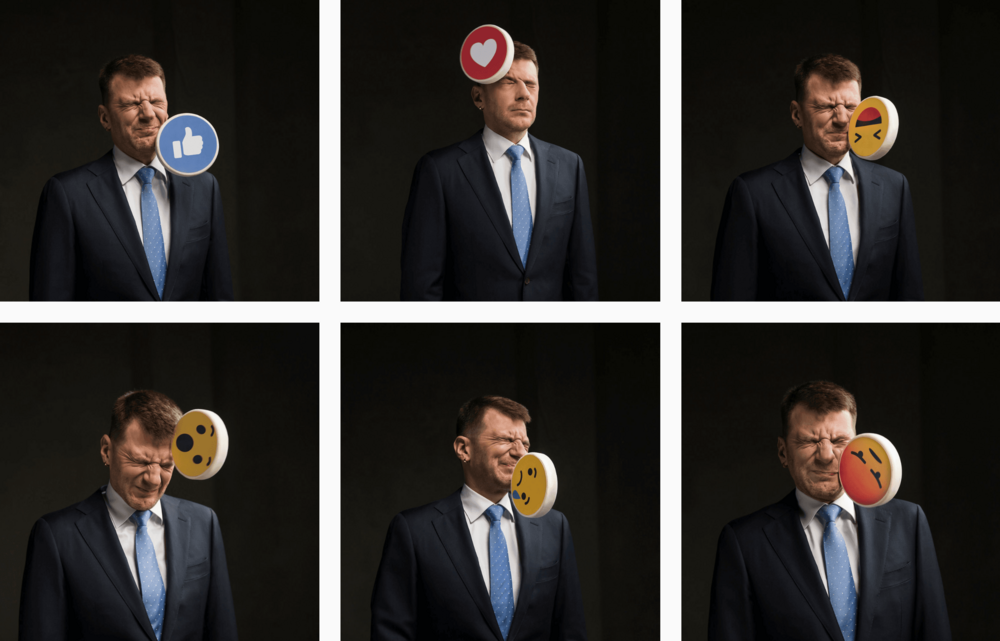 Sosyal medya şu sıralar gerek selfie kültürünün olumsuz etkileri, gerekse FOMO/gelişmeleri kaçırma korkusu gibi fobilerle sık sık eleştirel projelerin konusu oluyor. Sanatçı Tadas Maksimovas, art arda Facebook ifadeleri fırlatan motorlu ve uzaktan kumandalı silah Emotigun ile son günlerde internetin dikkatini üzerinde topladı. Videoda, bu sapanlı silahın önünde cesurca duran kişi de Maksimovas’ın ta kendisi. Sanatçı, Mark Zuckerberg’in Facebook’un görsel kimliğiyle uyumlu ünlü lacivert mavi takım elbisesinin benzerini giyerek kamera karşısına geçmiş. İçinde bulunduğumuz sosyal medya bıkkınlığını kara mizahla görselleştiriyor adeta