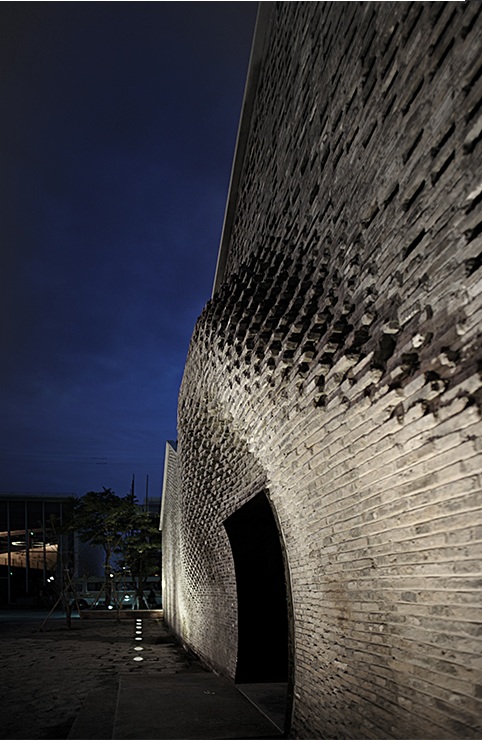 Mevcut binayı koruma ve güçlendirme çalışması olarak ele alınan projede eğrisel duvar ikinci bir katman olarak binaya giydirildi. Bu dalgalı katmanı oluşturan gri ve yeşil renkli tuğlalar, alan genişletmeleri sırasında eski yapıdan çıkan molozların geri dönüştürülmesiyle elde edilmiş.