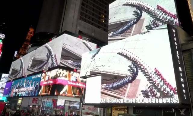 Times Meydanı her marka ve yaratıcı için çok önemli bir alan. 100 yıldır burada bulunan Coca-Cola, 2004’ten beri aynı olan panosunu LED ve optik yanılsamalarla dolu yeni panosuyla değiştirmişti. Mastercard ise 2015’te yılbaşını kutlamak için çok sayıdaki panoyu eş zamanlı kullanarak bir gösteri hazırlamıştı.