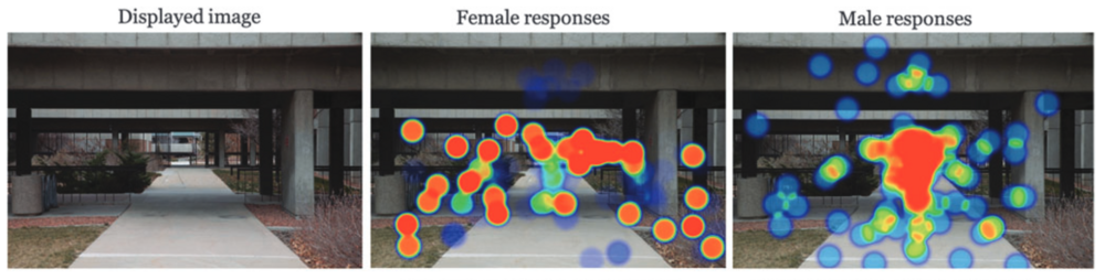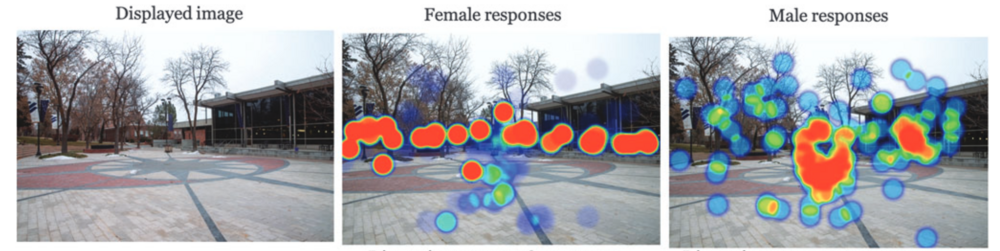 Sonuçlar çok açıklayıcı olmuş. Kadınların gözleri çalılar veya az aydınlatılmış alanlar gibi potansiyel güvenlik tehlikelerine karşı tetikte olarak çevrede gezinirken, erkekler gözlerini daha ziyade varacakları nokta/rota üzerinde tutmuş; ışıklar veya belirli nesneler gibi önlerindeki yolla doğrudan bağlantılı unsurlara bakmışlar.