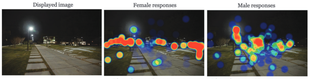 Araştırma, yaklaşık 600 katılımcıdan oluşan bir grupla (yüzde 56’sı kadın ve yüzde 44’ü erkek) yürütülmüş. Katılımcılara gece boyunca Utah Üniversite’sindeki çeşitli kampüs konumlarının görüntüleri gösterilmiş. Daha sonra katılımcılardan dikkatlerini çeken alanlara tıklayarak bu görüntülerle etkileşime girmeleri ve kendilerinin bu alanlarda yürüdüklerini hayal etmeleri istenmiş. Bu çalışma, araştırmacıların katılımcıların bakışlarının nerede takıldığı hakkında veri toplamasını sağladı. Ayrıca araştırmacıların bu verileri, hava karardıktan sonra her iki tarafın da nasıl bir yol izlediğini gösteren cinsiyete dayalı ısı haritalarına dönüştürmesine olanak tanıdı.