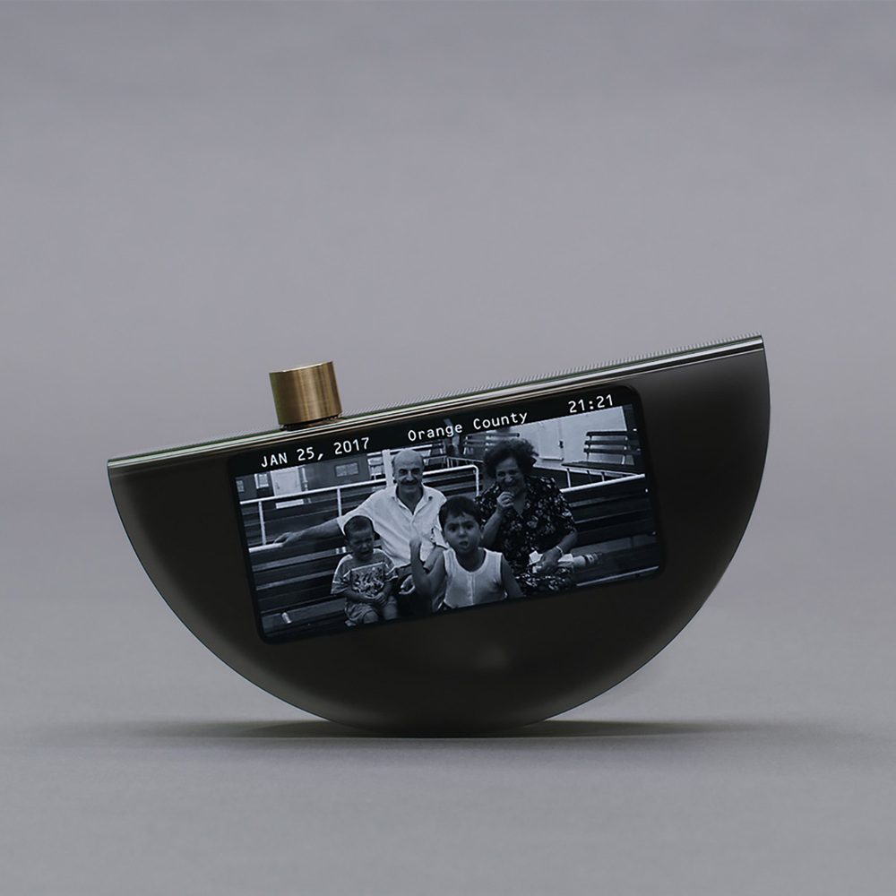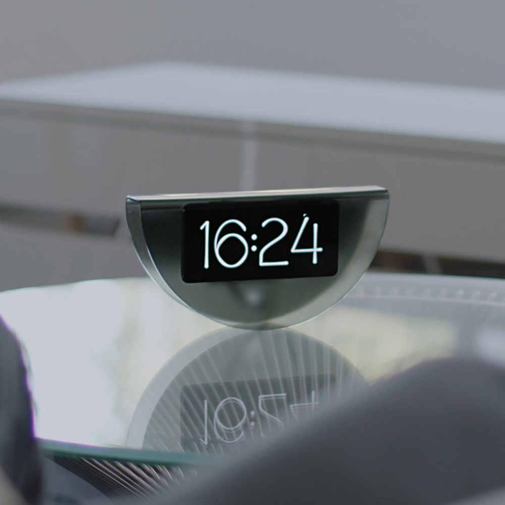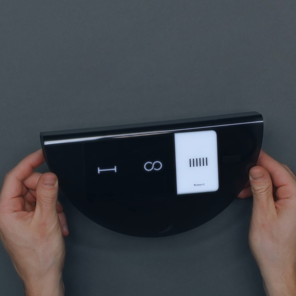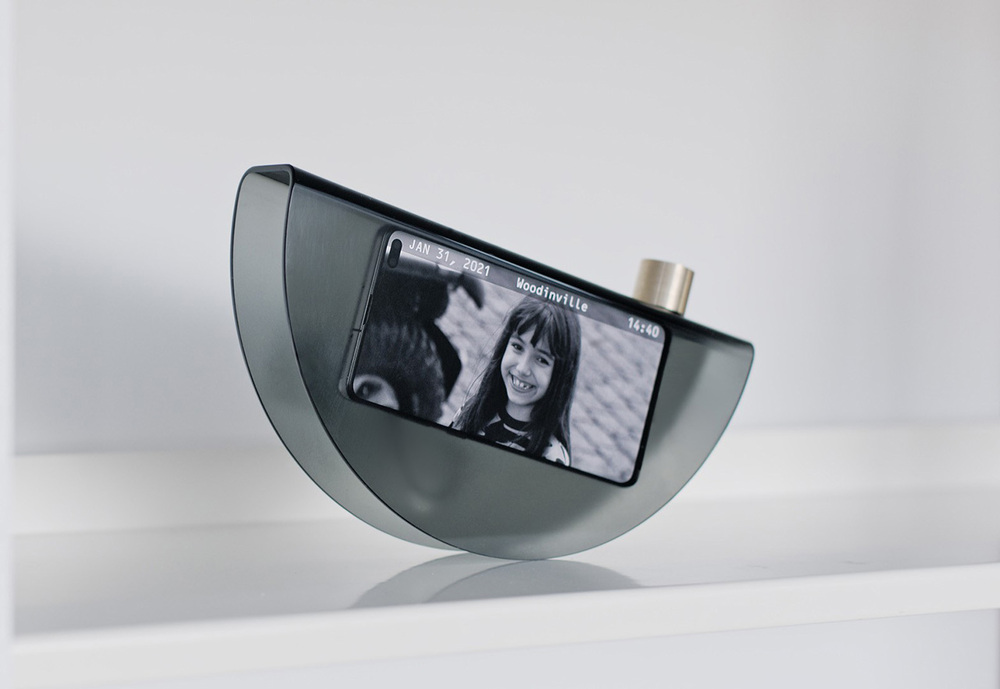 Ürün konsepti, geri dönüştürülmüş plastikten yapılmış ve buzlu bir yüzeye sahip. Taco benzeri bir hilal şeklinde. Telefonu açıklıktan içeri kaydırıp bu taco biçimli ürünü, kavisli kenarı altta olacak şekilde düz bir yüzeye yerleştirmeniz yeterli oluyor. Şekil, kasıtlı olarak sallamadığınız sürece hareketsiz kalacak şekilde dengelenmiş ve bu sallanma hareketi aslında işlevlerini etkiliyor. Tıpkı hareket sensörlü bir oyun kumandası gibi, telefonu eğmek ekrana dokunmanıza gerek kalmadan farklı modlar arasında geçiş yapmanızı sağlıyor. Sallanmak aynı zamanda “Endless Clock”u (sonsuz saat)in her harekette saat kadranını değiştirmesine neden olurken, hem “Timeline” (zaman çizelgesi) üzerindeki fotoğraf akışı hem de “Moment” (an) isimli soyut ekran desenleri bu harekete tepki veriyor.
