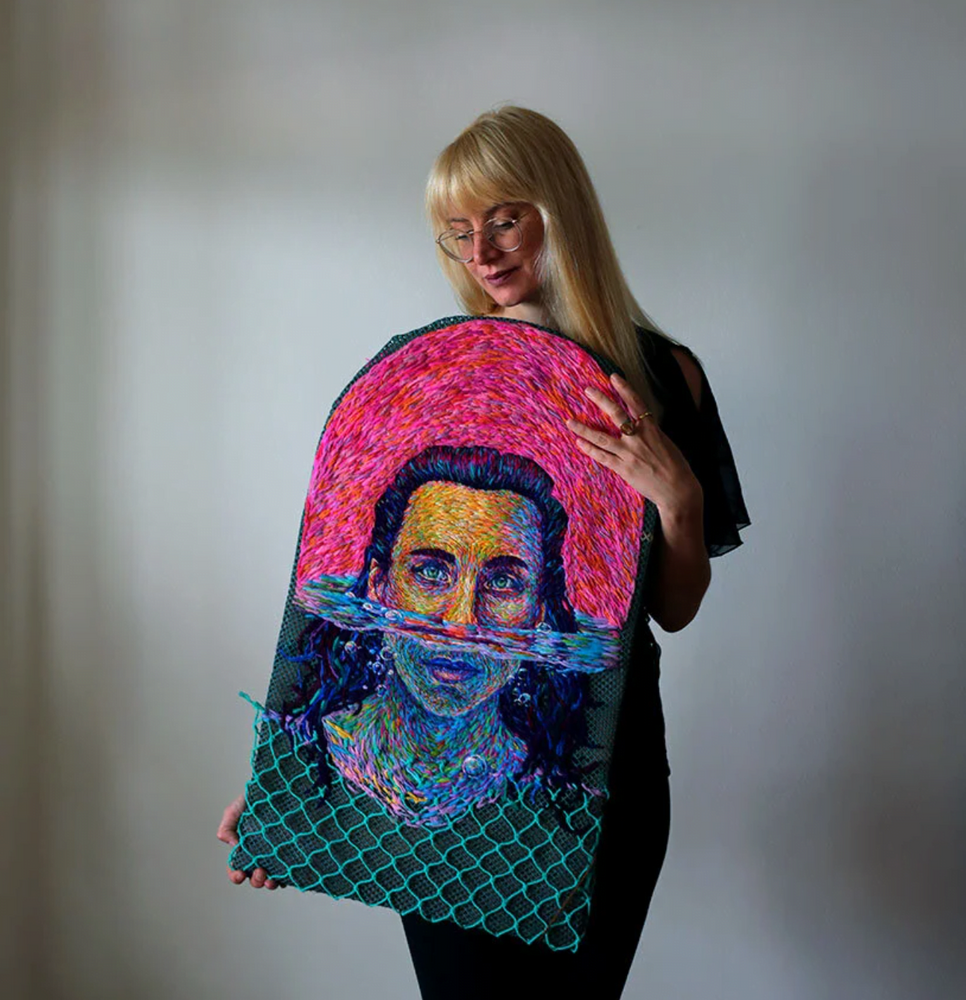 Portre bir sörfçü, bir deniz aşığı ve sürdürülebilir prensiplere bağlı olan Jess’in ruhunu yansıtıyor. Onun prensiplerine olan bağlılığına göstermek için sanatçı, kasnak ve kumaş yerine limanda bulduğu eski ağları kullanmış.
