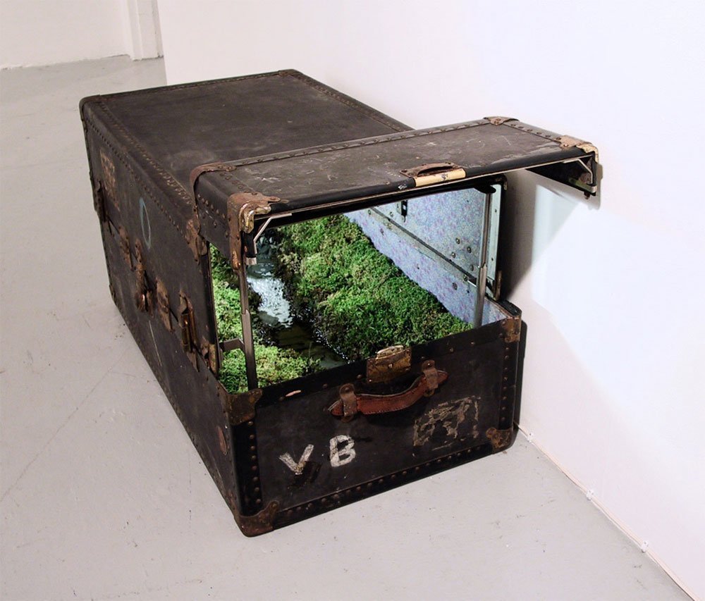 New York’ta yaşayan sanatçı Kathleen Vance’in Traveling Landscapes (seyahat eden manzaralar) başlıklı serisi, bavul içinde gizlenmiş yeşil manzaralardan oluşuyor.