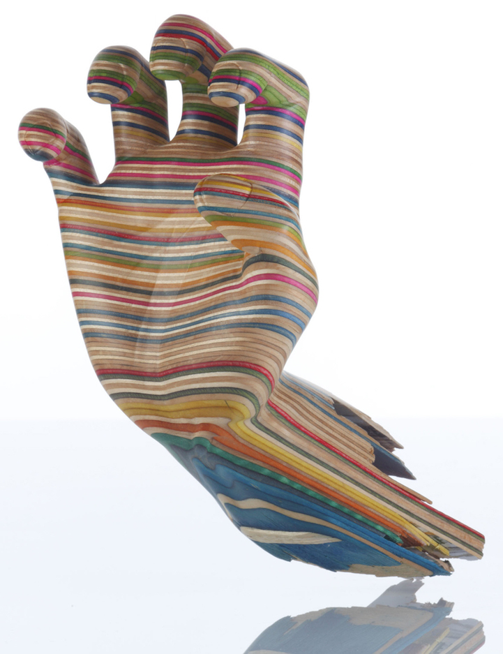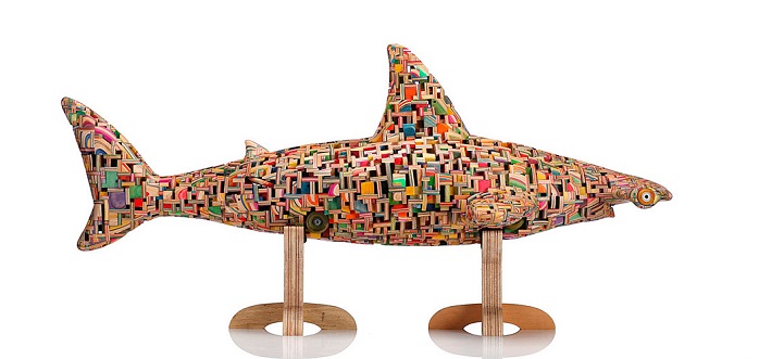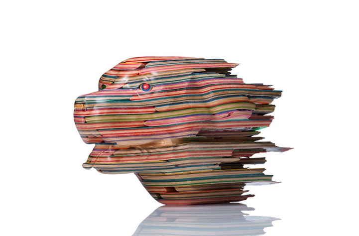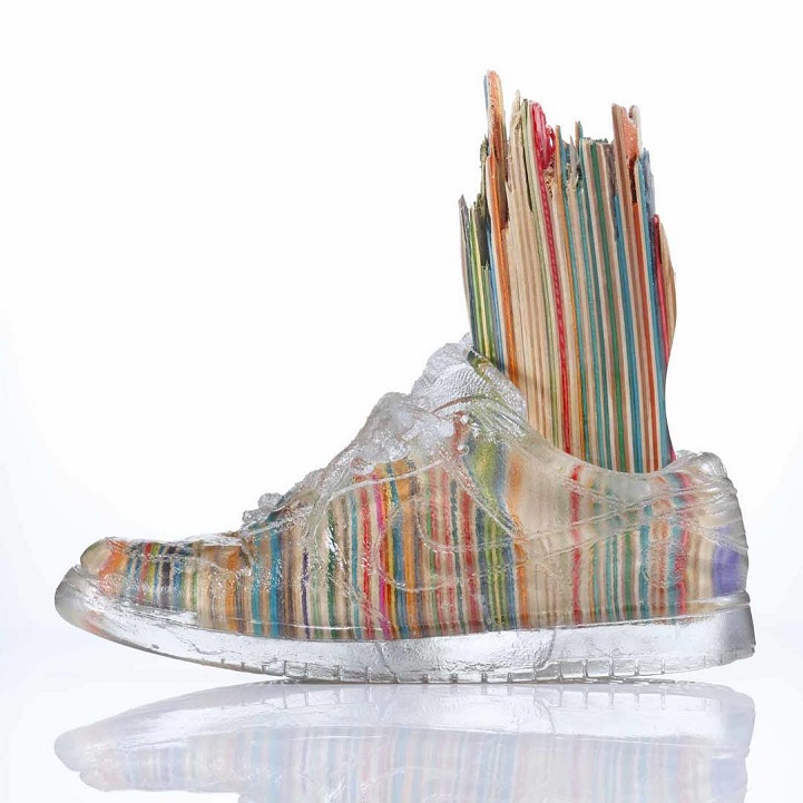Sanatçı Haroshi, ömrünü tamamlamış kaykay tahtalarını rengarenk heykellere dönüştürerek değerlendiriyor.