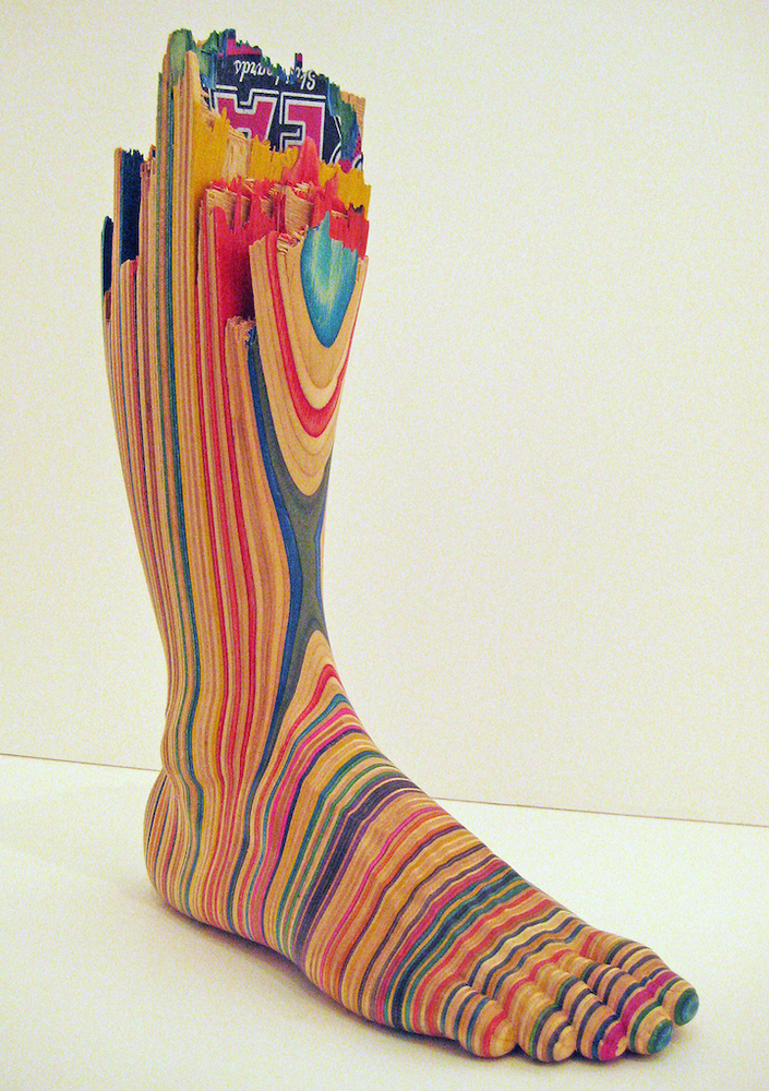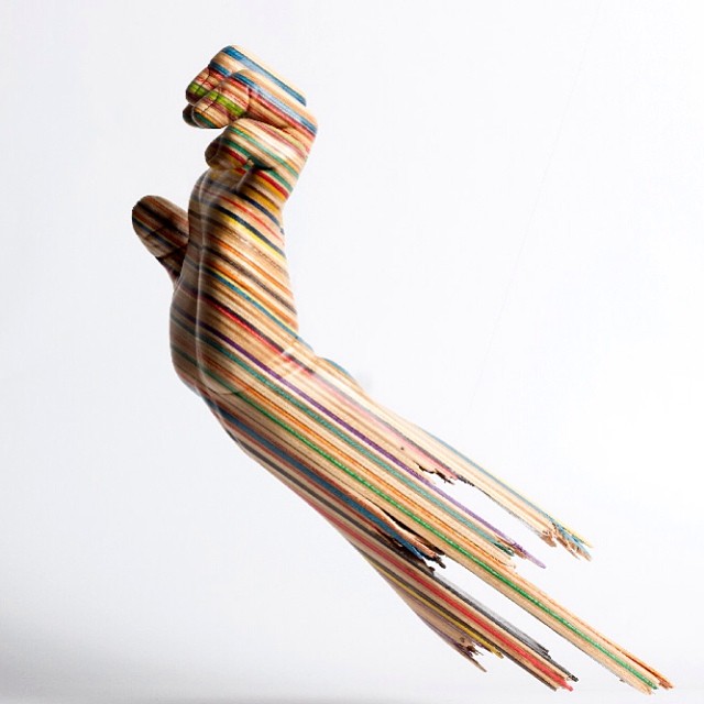 Kendi kendine öğrendiği teknikle 10 yılı aşkın bir süredir tahta oymacılığı yapan Haroshi, artık kullanılmayan kaykay tahtalarını katmanlı sanat eserlerine dönüştürüyor. Kesilen, istiflenen, çeşitli şekiller verilen kaykay parçaları bir araya geldiğinde ortaya harika görüntülerdeki heykeller çıkarıyor.