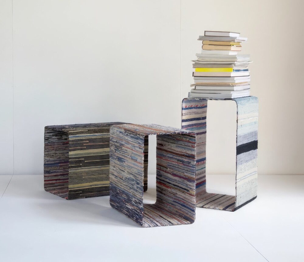 150 yılı aşkın süredir devam eden bir gelenek olan İsveç kilim sanatı (Swedish rag rug), Stokholm merkezli tasarımcı Lars Hofsjö’nün ellerinde çağdaş bir yorumla yeniden hayat buluyor. Kökleri zengin bir kültürel mirasa dayanan bu kilimler, kadınlar tarafından nesiller boyu eskimiş kıyafetler, perdeler, çarşaflar ve döşemeler kullanılarak dokunmuş. Bu süreç atık kumaşlardan; dayanıklılıklarıyla ünlü, karmaşık desenli, rengarenk kilimler ortaya çıkmasını sağlıyor. Bu belki de gelmiş geçmiş en başarılı ileri dönüşüm geleneklerinden biri olabilir. Peki ya bu kilimler ömrünü tamamladığında ne olacak? Stockholm merkezli tasarımcı Lars Hofsjö, onların da şanına yakışır biçimde yeniden değerlendirilmesi için harika bir proje hazırlamış.