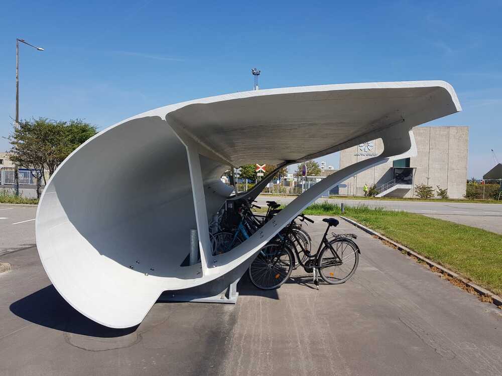 Uzun zamandır rüzgar enerjisinin savunucusu olan Danimarka hükümeti, kanadı ileri dönüştürme görevini, türbin üreticisi Siemens Gamesa‘ya verdi. Şirket, uzun, kavisli kanatları Aalborg Limanı’nda bisikletleri dış etkilerden elementlerden koruyan açık hava bisiklet barınağına dönüştürdü. 2021 yılında başladıkları bu ileri dönüşüm projesi o kadar beğeniyle karşılandı ki günümüzde de sıkça gündeme geliyor.
