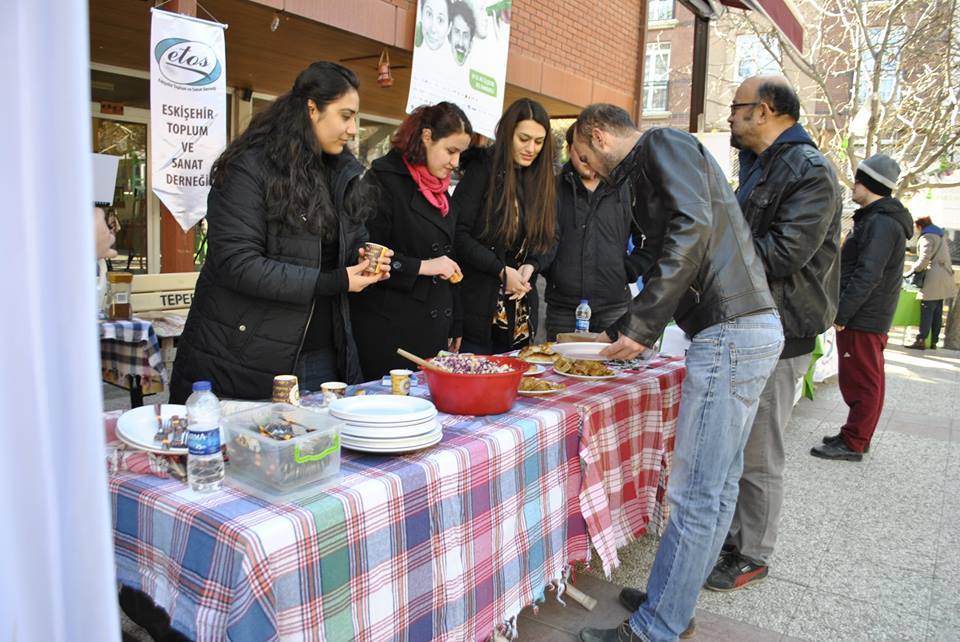 Eskişehir’de Tepebaşı Belediyesi bünyesinde faaliyet yürüten Tepebaşı Gençlik Merkezi bünyesindeki Üstünüze Afiyet ekibi, 30 Aralık’ta İkinci El Eşya Takas Pazarı ve Dönüşüm Sofraları etkinliğinin dördüncüsünü gerçekleştirdi. Etkinlik metninde; her özel günde olduğu gibi yılbaşında da ruhumuzu tüketen kapitalist sisteme ve serbest piyasa ekonomisine dikkat çekiliyor; herkes bu kısır döngüden uzaklaşmaya davet ediliyordu. Ece Ayhan’ın dizelerindeki “yakın zulmün küçük hisseli uzak ortakları” gibiyiz. Ama bu ortaklıktan vazgeçmek isteyenlerin sayısı artık azımsanacak kadar değil. Tohum takası ve kitap takası gibi giderek artan takas projeleri de gösteriyor ki pek çok insan hem yaşadığı bölgede hem de internette bu tür uygulamaları kucaklıyor ve hatta yaygınlaşmasını arzu ediyor.