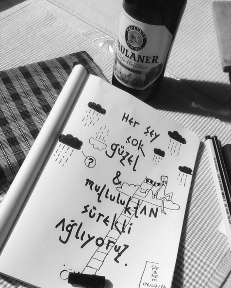 Anl Creative’de metin yazarı olarak görev alan Şebnem Kuş ve Ogilvy İstanbul‘da sanat yönetmeni olan Mehmet Demirel, gündelik yaşamdan taşıp biçim bulan anıları çizim ve GIF’e dönüştürüyor. Şebnem Kuş, gündelik çizimlerinde hayata dair minik detaylara yer veriyor. Adeta günden artakalan tek bir cümlenin biçim bulmuş halini yansıtıyor.