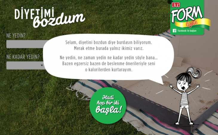 Diyet yapmanın en dertli kısmı herhalde kaçamaklar yapıp sonra diyete geri dönememek. Eti Form Light, bu irade yönetiminde diyet yapanlara yardımcı olmak için bir site yapmış: diyetimibozdum.com
