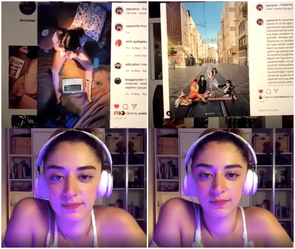 Konu pandemi sürecine geldiğinde uzaktan eğitimin ve karantina sürecinin nasıl hissettirdiği konuşuldu. Sayna bu dönemin kendisi için oldukça verimli geçtiğine değiniyor. Karantina süreci sayesinde çalışmak için daha fazla fırsat yakalamış oluyor. Karantina döneminde Kadıköy sokaklarındaki otoportre işi ve Taksim’de İstiklal Caddesi’nde Edouard Manet’nin Kırda öğle yemeği resminden esinlenerek gerçekleştirdiği röprodüksiyon konuşulan işler arasında yer alıyor.